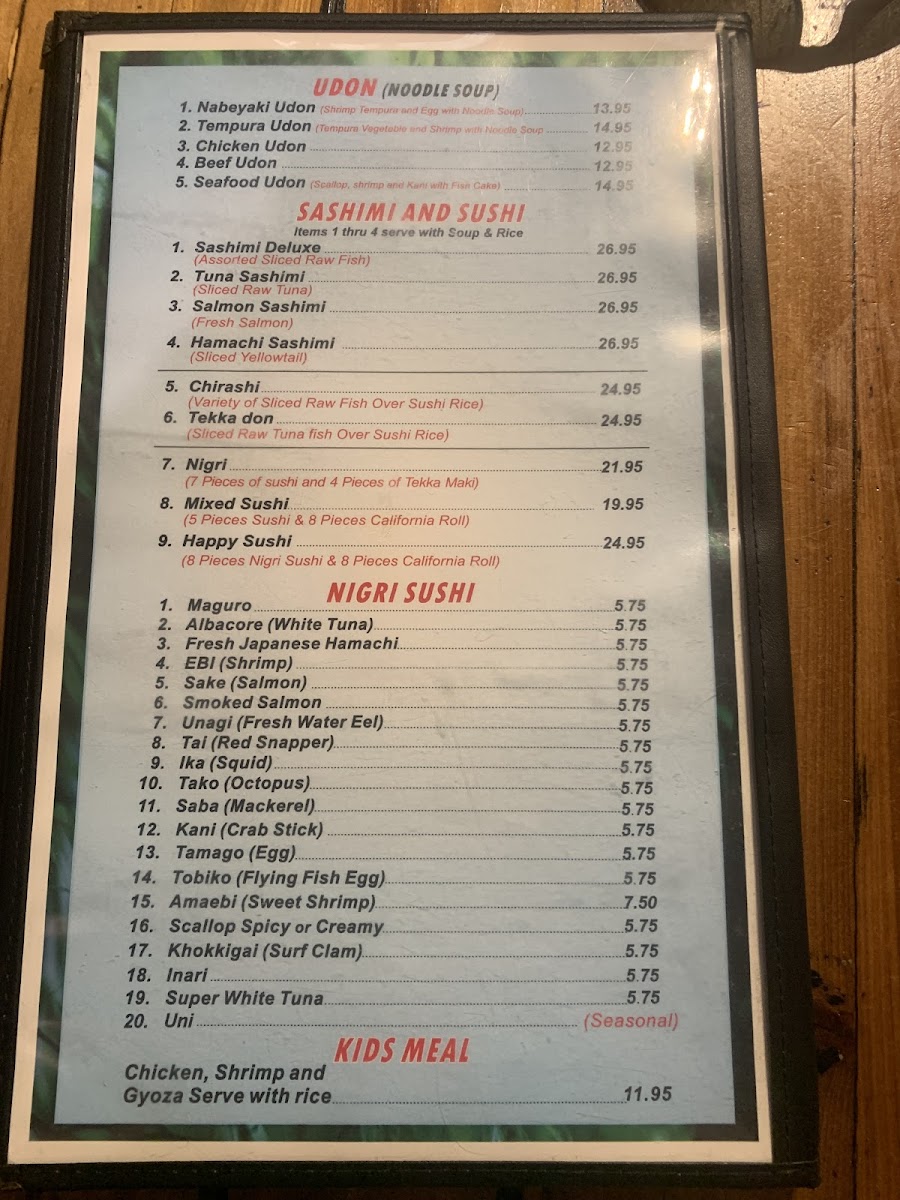 Overall, Kazan’s selection suits those seeking straightforward, well-prepared Japanese cuisine in a comfortable setting. The menu encourages exploration among different rolls and entrees while also making it easy to find something satisfying for every visit.